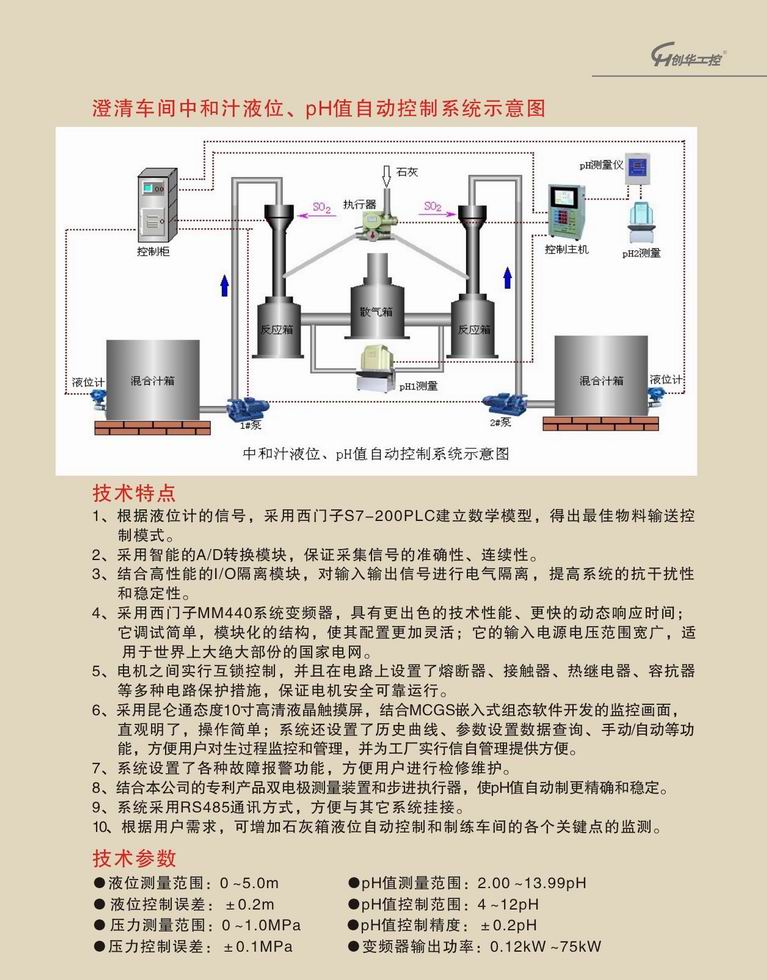 澄清車(chē)間中和汁液位和pH值自控系統(tǒng)