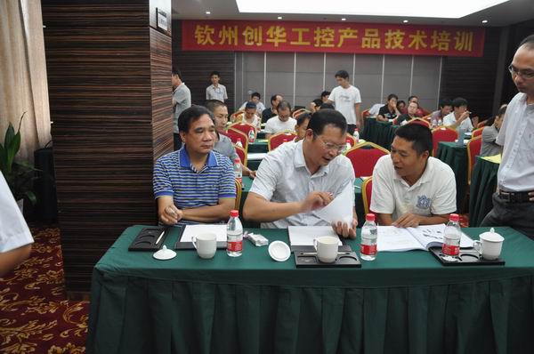 2012年8月19日至23日,欽州市創(chuàng)華工控設(shè)備有限公司主辦的“創(chuàng)華工控產(chǎn)品技術(shù)培訓(xùn)”在欽州金灣國(guó)際大酒店成功舉行。培訓(xùn)得到了全國(guó)眾多糖廠的大力支持與幫助,來自各糖廠的車間負(fù)責(zé)人、儀表工程師及創(chuàng)華工控技術(shù)人員等40多人參加了培訓(xùn)。