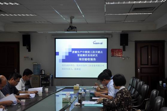 我公司承擔的廣西工業(yè)創(chuàng)新發(fā)展項目—《蔗糖生產(chǎn)中澄清工段關(guān)鍵點智能測控系統(tǒng)研發(fā)》于2015年5月13日在欽州進行驗收,廣西壯族自治區(qū)工業(yè)和信息化委員會組織的專家組聽取了項目承擔單位情況介紹,審查了相關(guān)材料,經(jīng)過質(zhì)詢和討論,專家一致同意項目通過驗收。